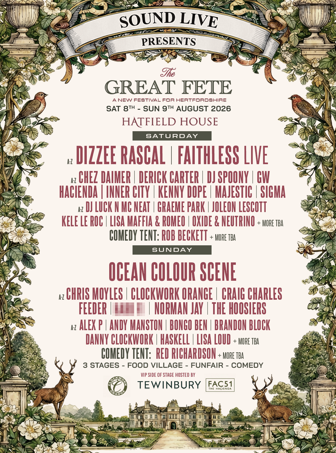 Featuring three stages, a food village, comedy, a kids’ zone, and a funfair, The Great Fete aims to offer something for everyone. Enjoy some of the most iconic dance acts of the past 30 years as we bring you dance classics and sing along anthems. Day splits coming soon – message us with any queries on socials!